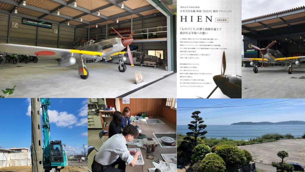 当社は、太平洋戦争で活躍した戦闘機を再現するプロジェクトに協力しています。このプロジェクトは、ある個人が太平洋戦争で使用された戦闘機を購入し、日本に持ち込んだことがきっかけです。その戦闘機には岡山出身のパイロットとの縁があり、また、その機体を目にした映画監督が「戦後80年の時を経て、当時の人々の想いを伝えたい」という強い感銘を受けたことが背景にあります。その結果、私たちはプロデューサーとしての協力を依頼され、岡山県の貢献事業の一環としてこのプロジェクトに参加しました。具体的には、その戦闘機を保管・展示するための倉庫の建築設計を担当し、歴史的価値を未来へ繋ぐための空間を創り上げました。